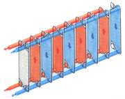 Diese werden wechselseitig von den am Wärmeaustausch beteiligten Medien durchströmt.