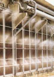 Lufttemperatur durch Vorbefeuchtung der Kühlluft oder Wasserbeaufschlagung der Kühlflächen zu unterstützen.